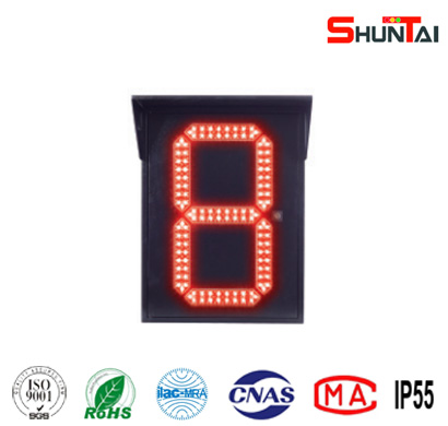 公司開發(fā)的筆段式倒計(jì)時(shí)顯示器采用進(jìn)口超高亮度LED作為光源,具有功耗低、亮度高、使用壽命長等特點(diǎn),各項(xiàng)指標(biāo)符合GA/T 508-2014標(biāo)準(zhǔn)。
