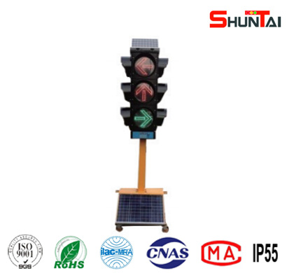 移動(dòng)式太陽能信號(hào)燈是一種可移動(dòng)、可升降的太陽能應(yīng)急道路交通信號(hào)燈,采用太陽能供電、市電輔助充電。