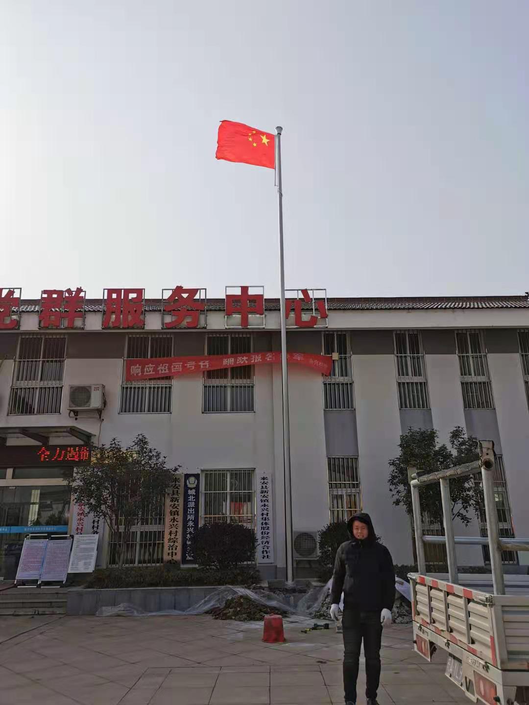 耀龍旗桿擁有生產旗桿20多年的經驗,在這多年的時間里,不斷改進旗桿的質量與服務,所以在此次與安慶市開發區菱北辦事處黨群服務中心的合作中,耀龍旗桿受到了高度的認可贊揚,耀龍也會繼續前行,為更多的客戶提供更好的旗桿!